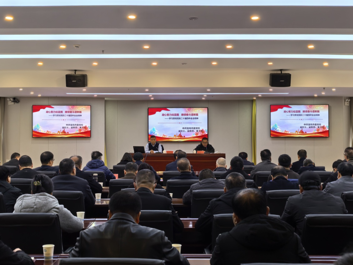 12月2日,宝鸡市水利局举办学习贯彻党的二十届四中全会精神宣讲报告会。市委党校副校长、副教授童力冲作《凝心聚力绘蓝图 接续奋斗谱新篇——学习贯彻党的二十届四中全会精神》专题辅导,市水利局党组成员、二级调研员周建宇主持会议,局系统科级以上领导干部、局机关全体干部120余名参加会议。