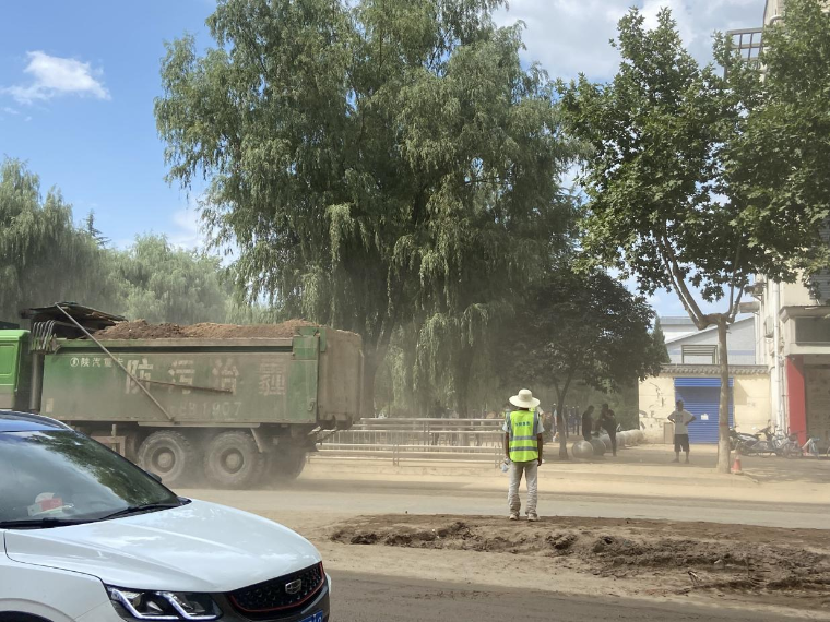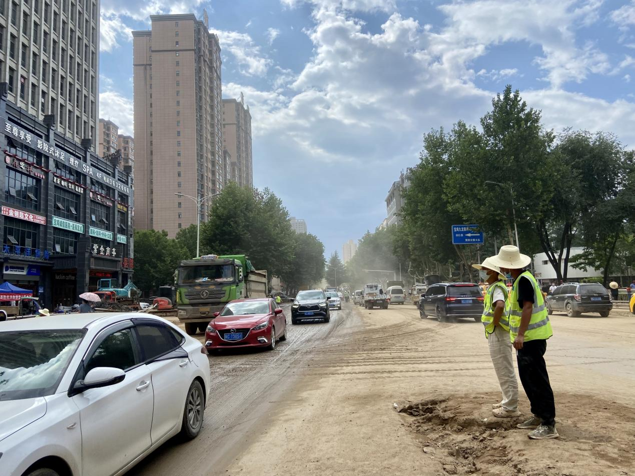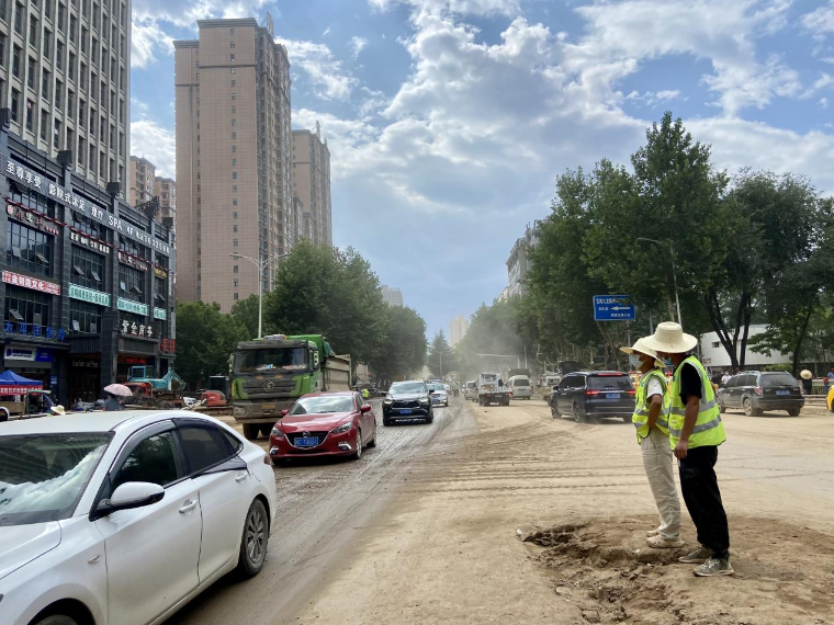 人间七月,正值盛夏,蝉鸣不断,本是轻松美好的夏日午后,但宝鸡市渭滨区却异常繁忙。自灾情发生以来,水投集团主要负责火炬路段路面清理及石坝河、瓦峪河清淤工作,火炬路段淤泥满地、车流不息,尘土漫天、机械轰鸣,臭味熏天、烈日当头,一个个身着绿马甲的水投突击队员不断穿梭其中,各司其职,一站就是12个钟头,挥汗如雨,用自己的实际行动诠释了水投人的奉献精神。