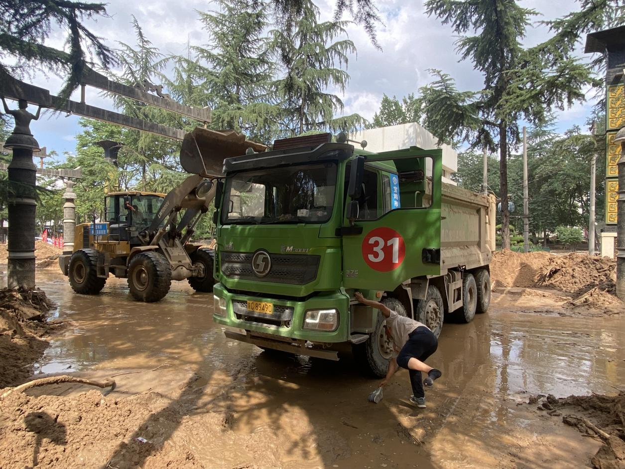 装载机需更换轮胎;驾驶室窗户无法升降;空调不制冷需维修;水箱高温报警需清洗;自卸车速来桥头补油…”水投集团抢险救灾工作群内不断弹出各种车辆信息及实况照片,抢险工作仍在紧张有序的展开。7月21日下午3:30时,“石坝河上游王家庄、孙家庄河道4.5公里及瓦峪河中岩山村段河道2公里清淤工作已顺利完成。”消息传来,一种自豪感从大家心底油然而生,虽然疲惫不堪,但胜利的曙光已然照进了水投人的心中。