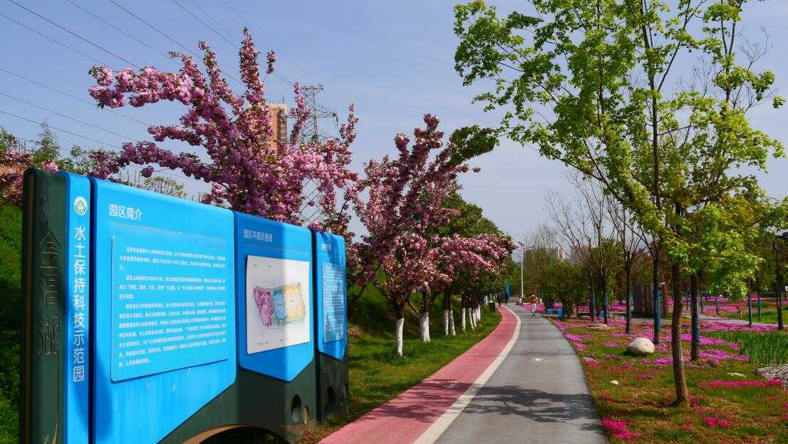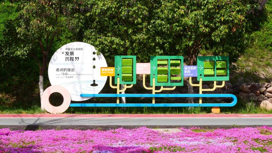 市渭河拦河闸管理中心水土保持科技示范园以“科普、宣传、示范、休闲”为主题,划分为科普教育宣传区、水土保持综合治理示范区、生态景观管护区、娱乐互动休憩区四大功能区,集成多种水土保持治理技术,配套建设水土保持百科长廊、普法长廊、渭河生态科普等互动设施,在提供休闲空间的同时,向市民普及水土保持知识,增强全社会水土流失忧患意识,展示水土保持成果,促进生态文明建设。