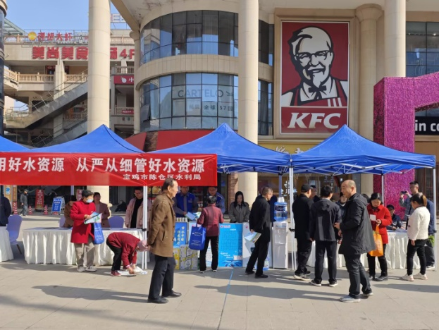 一是组织集中宣传。组织局属城区企事业单位、青啤宝鸡公司、九龙富锶、古陈仓矿泉水等企业及区老科协水利分会等单位,在商业繁华地段金谷广场,通过发放彩页、问答咨询、摆放展板、悬挂横幅等形式进行集中宣传。二是开展主题活动。组织干部职工到渭河综合治理工程“陈仓印象”水源地,以“保护水资源、维护水安全”为主题,开展捡拾垃圾、刷新标识、整修篱笆等活动,开展“净岸护水”专项行动。三是深入社区服务。组织志愿者到茗苑等社区,开展“节水中国行”志愿服务活动。为社区居民发放宣传彩页、讲解节水知识、张贴节水标识等,提高居民水资源节约保护意识。四是强化媒体传播。通过LED电子屏、微信群、抖音、晚会等新媒体形式,持续播放“世界水日”宣传口号、节水小视频、署名文章及水利建设成就等,在全社会形成爱水、惜水、护水的浓厚舆论氛围。