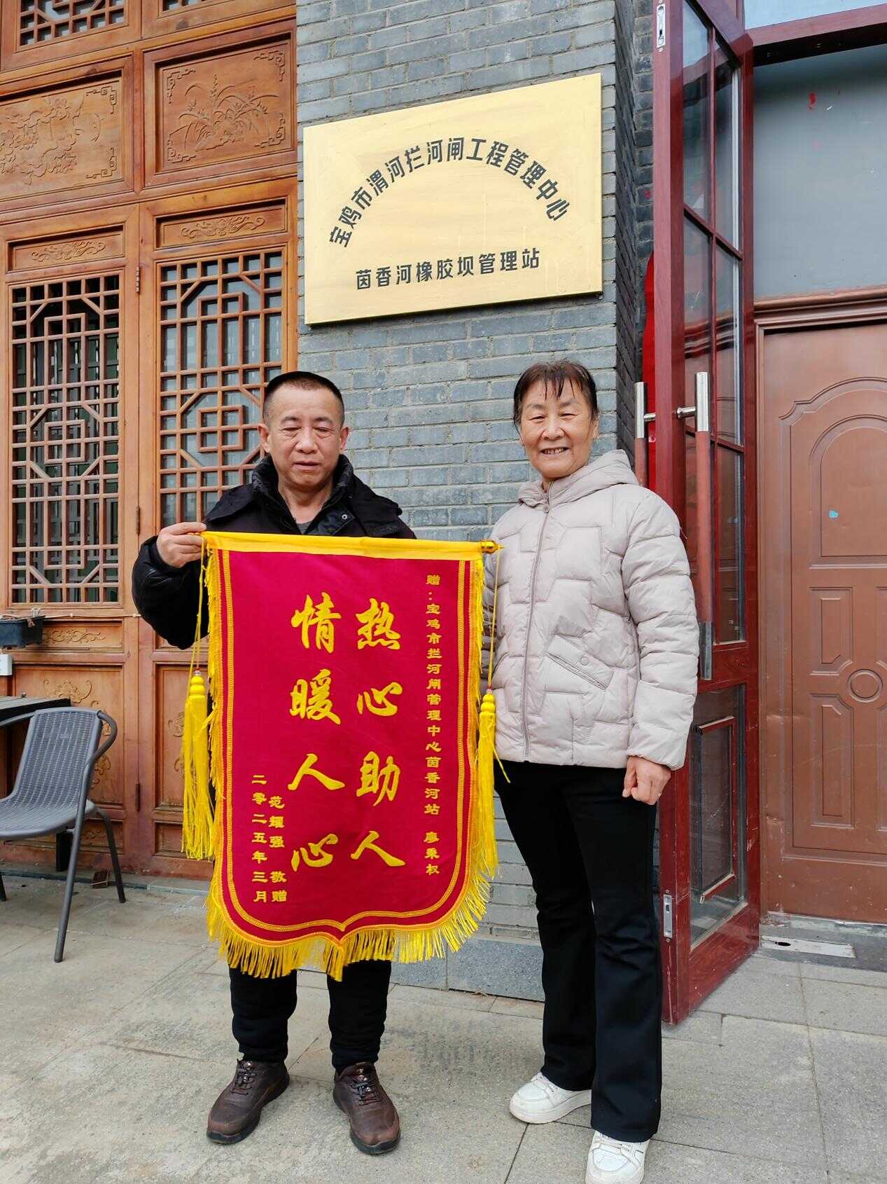 3月3日,走失儿童的家长专程将一面书有“热心助人,情暖人心”字样的锦旗送到茵香河橡胶坝工程管理站,以表达对廖师傅热心助人,帮助群众解决困难的感激之情。