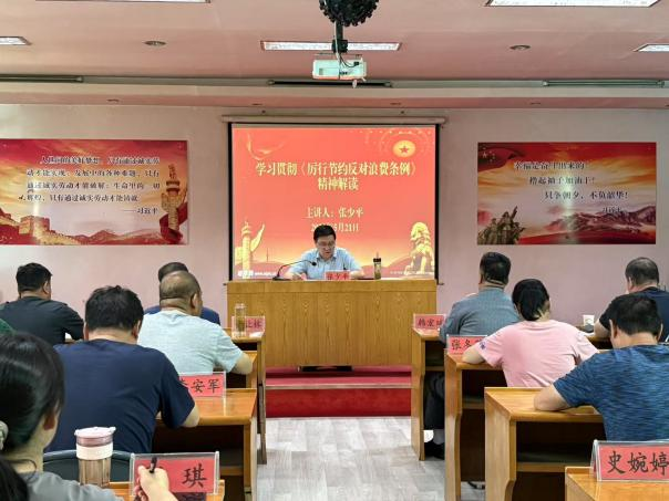 为深入贯彻落实党中央、国务院关于厉行节约、反对浪费的决策部署,5月21日,市地下水管理监测中心组织全体干部职工开展《党政机关厉行节约反对浪费条例》学习宣贯会。监测中心主任张少平主持并讲解,全体干部职工参加。